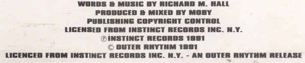 Licensed from Instinct Records Inc. N.Y. - an Outer Rhythm release (P) Instinct Records 1991. (C) Outer Rhythm 1991. Also available with red print on labels.