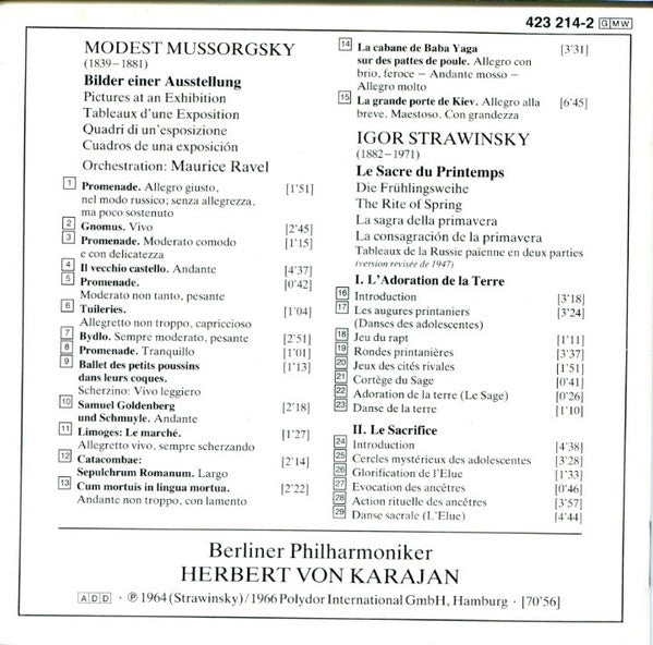Recording: Berlin, Jesus-Christus-Kirche, 11/1965 & 3/1966 (Mussorgsky) / 10/1963 & 2/1964 (Strawinsky)
