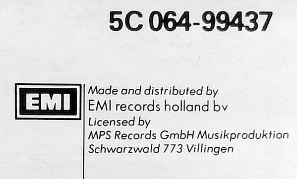 at the top right corner of the back cover it reads: "made and distributed by EMI Records Holland B.V., licensed by MPS Records GmbH Musikproduktion Schwarzwald 773 Villingen", but at the bottom left corner of back cover it reads: "made by Delta B.V." - both "Made By" mentions have been submitted accordingly. Also on back: ℗ 1976.