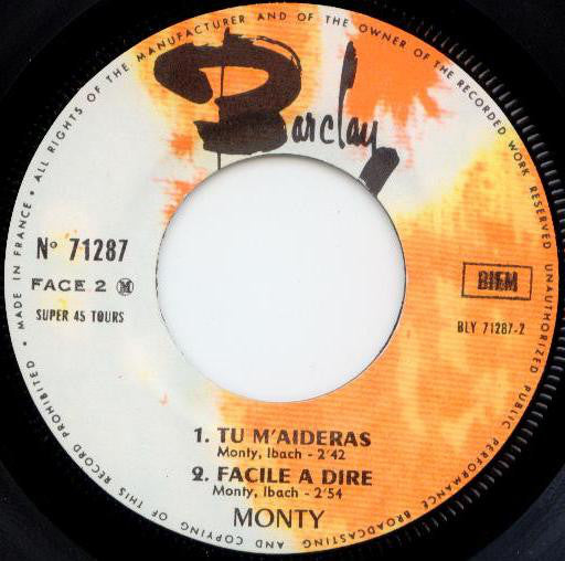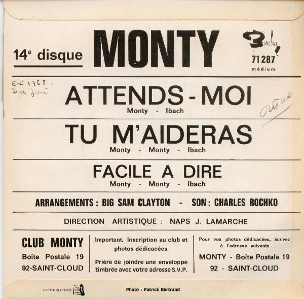 Monty - Attends-Moi (14e Disque) (7", EP)