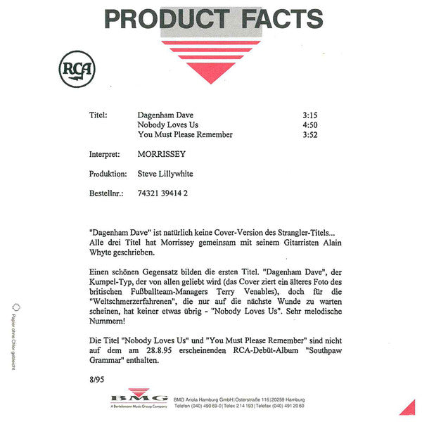 Some copies in Germany were used as promo with a german 'product facts' sheet and a sticker on the back box 'Unverkäufliches Muster'
