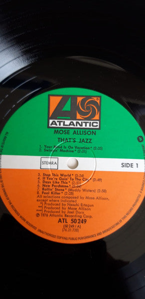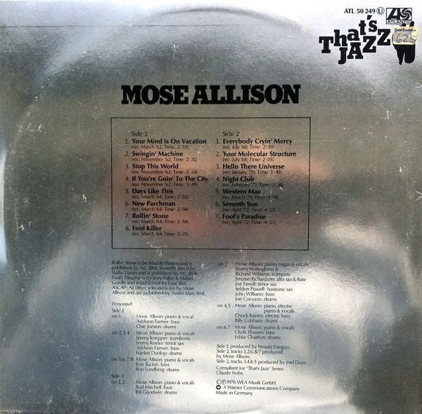Producer – Joel Dorn (tracks: B3 to B5), Mose Allison (tracks: B1, B2, B6, B7), Nesuhi Ertegun (tracks: A1 to A8)