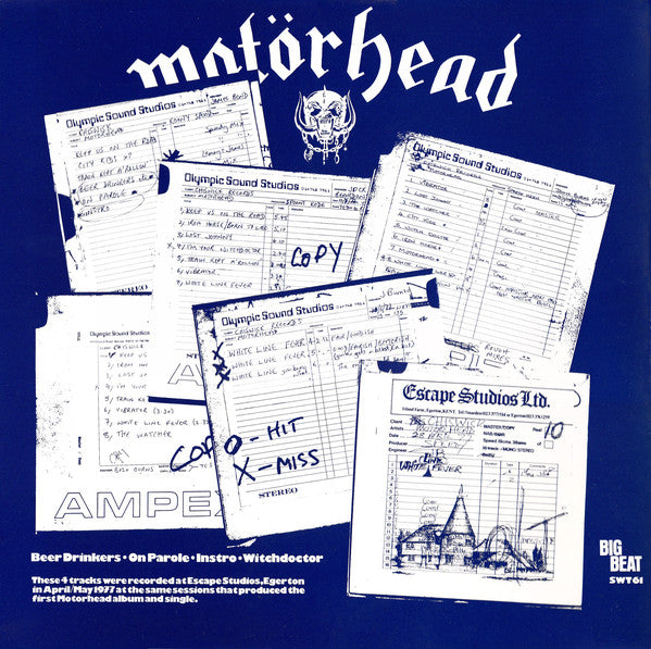 These 4 tracks were recorded at Escape Studios, Egerton, in April/May 1977 at the same sessions that produced the re-recorded first Motörhead album and single. "On Parole" was first recorded by Motörhead Dec 1975-Jan 1976 for their shelved United Artists album, later issued as "On Parole".