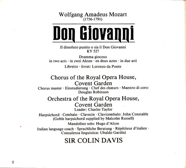 Wolfgang Amadeus Mozart, Sir Colin Davis - Don Giovanni (3xCD, Album, RE + Box)