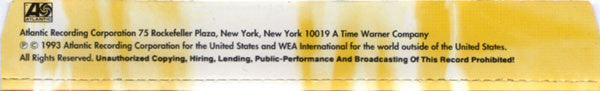 ® 1993 Atlantic Recording Corporation for the United States and WEA International for the World Outside of the Unites States.