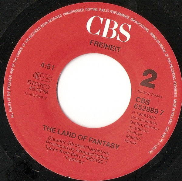 ℗ © 1988 CBS Schallplatten GmbH Germany Cover: Printed in Holland, Imprime en Hollande Label: Made in Holland