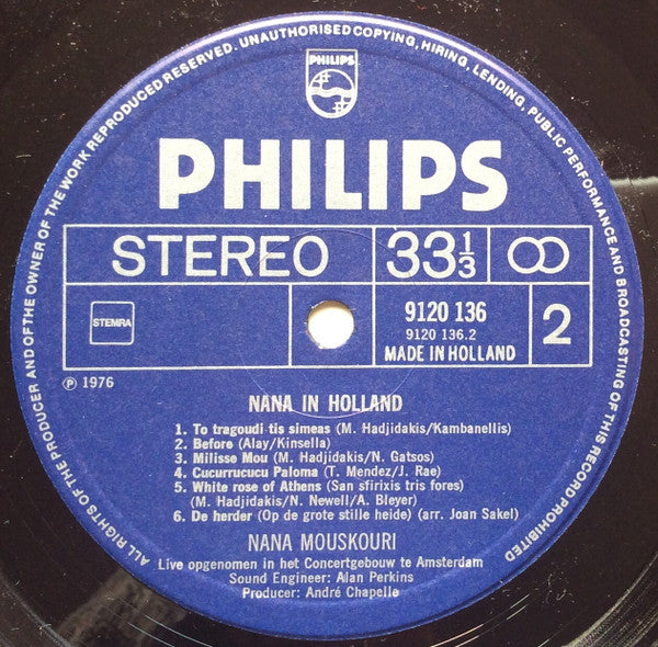 Recorded live at the Concertgebouw in Amsterdam: "Live opgenomen in het concertgebouw te Amsterdam" (label); "opgenomen in het Concertgebouw te Amsterdam" (cover) ℗ 1976 Printed in The Netherlands Made in Holland