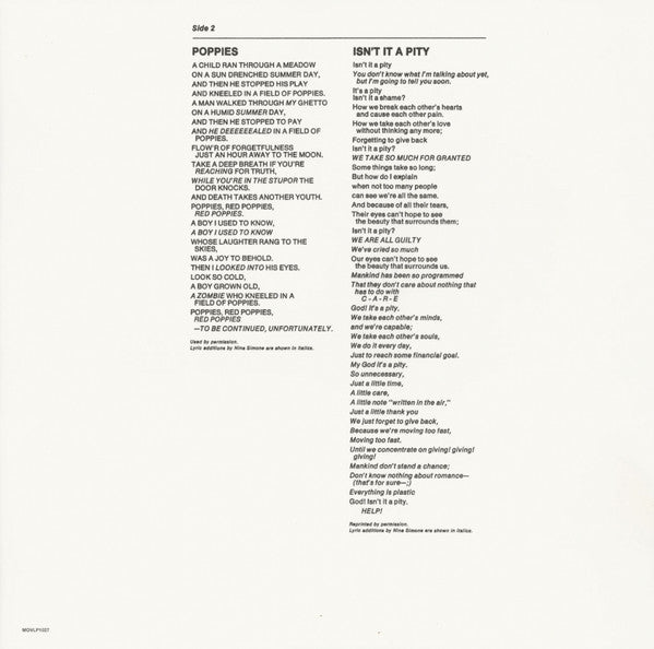 . Medley 18:29B1. Poppies 4:06B2. Isn't It A Pity 11:02