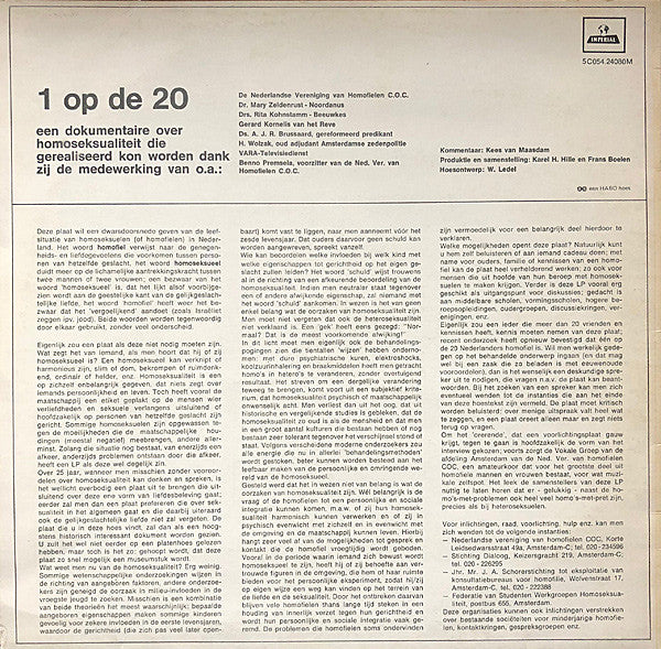 No Artist - 1 Op De 20 (Een Dokumentaire Over Homosexualiteit) (LP, Album)