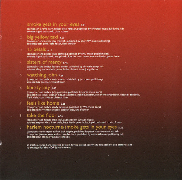 1. Smoke Gets In Your Eyes 5:142. Big Yellow Taxi 4:593. 15 Petals 6:154. Sisters Of Mercy 6:465. Watching John 7:246. Liberty City 6:057. Feels Like Home 9:358. Take The Floor 6:56. Harlem Nocturne / Smoke Gets In Your Eyes 5:26