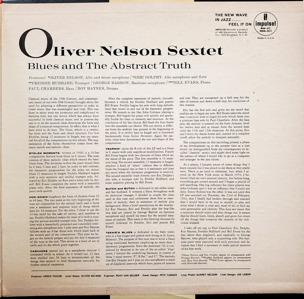 Oliver Nelson - The Blues And The Abstract Truth (LP, Album, RE, RP)