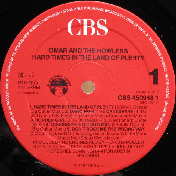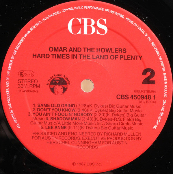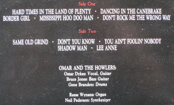 A1. Hard Times In The Land Of Plenty 3:54 A2. Dancing In The Canebrake 4:34 A3. Border Girl 3:36 A4. Mississippi Hoo Doo Man 3:54 A5. Don't Rock Me The Wrong Way 3:30 B1. Same Old Grind 2:28 B2. Don't You Know 3:46 B3. You Ain't Foolin' Nobody 2:30 B4. Shadow Man 3:43 B5. Lee Anne 5:11
