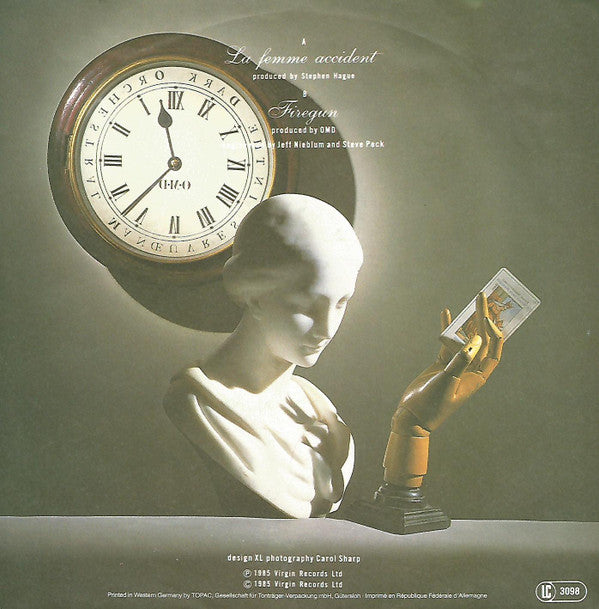 ℗ & © 1985 Virgin Records Ltd. Virgin Music Publishing Ltd. Printed in Western Germany by TOPAC, Gesellschaft für Tonträger-Verpackung mbH, Gütersloh · Imprimé en République Fédérale d'Allemagne Misprinted Cover: On side A is the mirrored image of the original side B. On side B is the mirrored image of the original side A. The text is on the right sides and not mirrored. Although the time on the label states 3:43 All singles play the 2:48 album version of La Femme Accident.