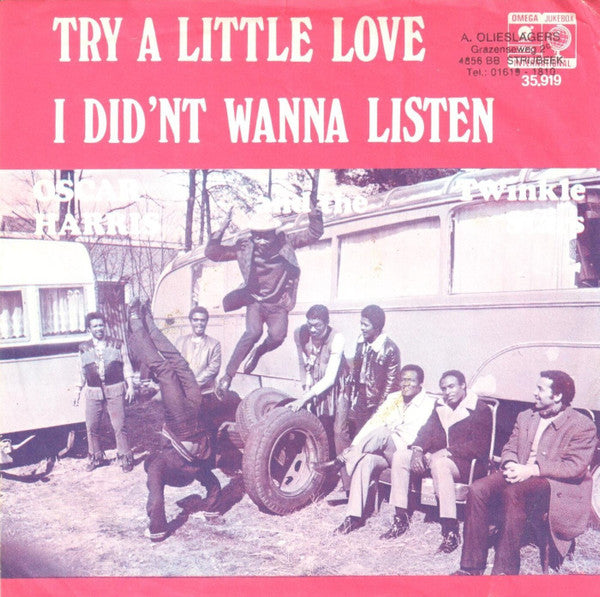 Also on the center labels the artist's name is misprinted as "Oscar Harris and The Tinkle Stars".