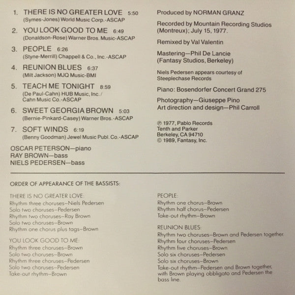 Recorded At Montreux Jazz Festival Recorded By Mountain Studios Mastered At Fantasy Studios Marketed By BERNHARD MIKULSKI Schallplatten-Vertriebs-GmbH Phonographic Copyright (p) Pablo Records Copyright (c) Fantasy, Inc. Made By Interpress Published By World Music Corp. Published By Warner Bros. Music Published By Chappell & Co., Inc. Published By MJQ Music Published By HUB Music, Inc. Published By Cahn Music Co. Published By Warner Bros. Published By Jewel Music Pub. Co.