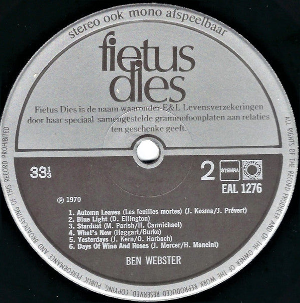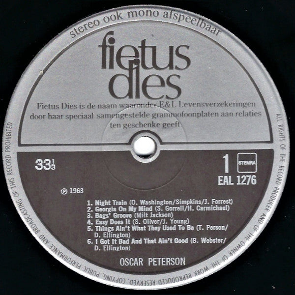 Side A is a compilation of tracks from the Oscar Peterson album "Night Train" Side B is a compilation of tracks from the Ben Webster album "Blue Light" Promotional album for E&L Levensverzekeringen Nederland