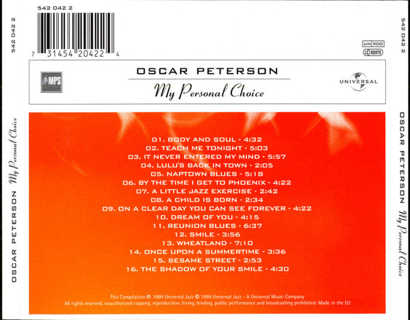 Barcode 731454204224 Barcode 7 31454 20422 4 Matrix / Runout 07314 542 042-2 01 + Mastering SID Code IFPI L002 Other MADE IN GERMANY BY UNIVERSAL M & L (code)A Label Code LC 00979