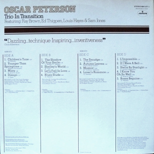Side A & C were recorded live at The Tivoli Gardens, Copenhagen, Denmark, May 29, 1965. Side B was recorded at Chicago Sound Studios, Chicago, May 4, 1966. Side D was recorded at Chicago Sound Studios, Chicago, December 3, 1965. Re-mastered at Universal Studios, Chicago. ℗ 1976 Printed in The Netherlands.
