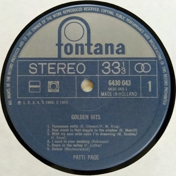 Made in Holland Printed in The Netherlands Mid 70s reissue