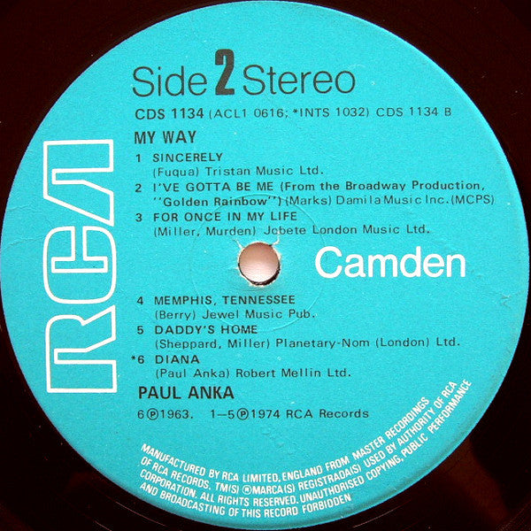Manufactured by RCA Ltd., England from master recordings of RCA Records.
