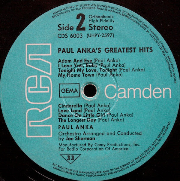 A1. Diana A2. Put Your Head On My Shoulder A3. Lonely Boy A4. Time To Cry A5. I Love You In The Same Old Way A6. You Are My Destiny A7. Crazy Love A8. Don't Ever Leave Me B1. Adam And Eve B2. I Love You, Baby B3. Tonight My Love, Tonight B4. My Home Town B5. Cinderella B6. Love Land B7. Dance On Little Girl B8. The Longest Day