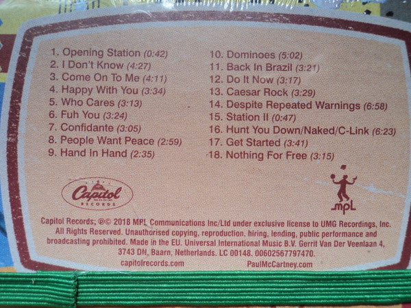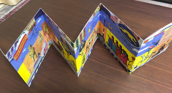 Packaged in a fold-out sleeve, held together by a Green elastic band. The CD is held in a Green paper sleeve within the package.