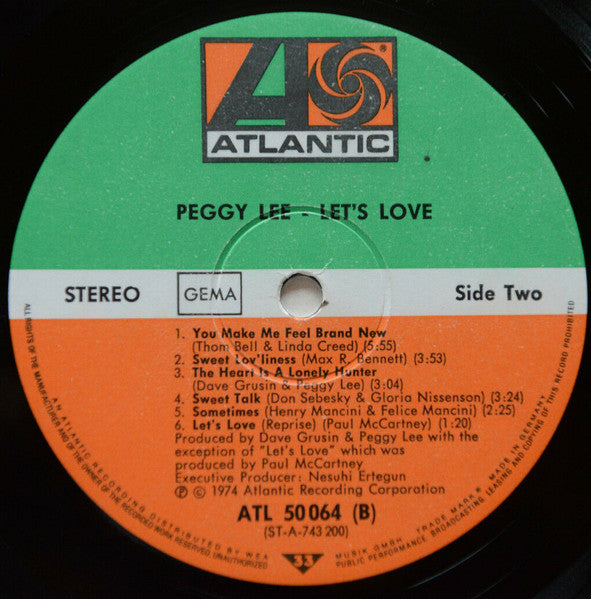 A1. Let's Love 2:58 A2. He Is The One 4:24 A3. Easy Evil 4:36 A4. Don't Let Me Be Lonely Tonight 4:04 A5. Always 3:51 B1. You Make Me Feel Brand New 5:55 B2. Sweet Lov'liness 3:53 B3. The Heart Is A Lonely Hunter 3:04 B4. Sweet Talk 3:24 B5. Sometimes 2:25 B6. Let's Love (Reprise) 1:20