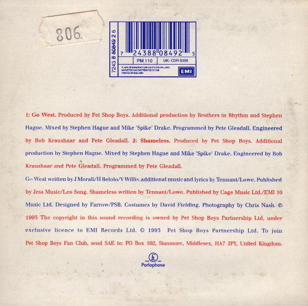 ℗ 1993 The copyright in this sound recording is owned by Pet Shop Boys Partnership Ltd, under exclusive licence to EMI Records Ltd.