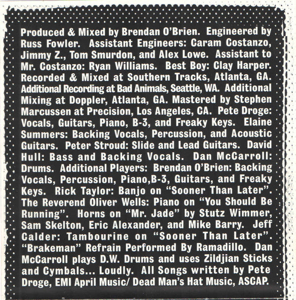 Recorded and mixed at Southern Tracks, Atlanta, GA. Additional recording at Bad Animals, Seattle, WA.