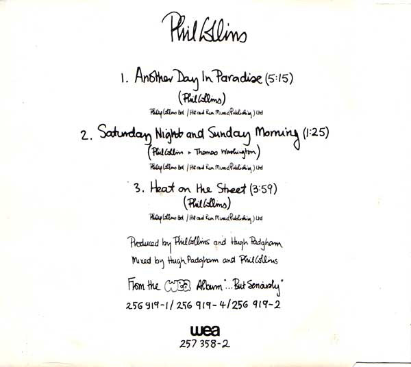 Phonographic Copyright (p) WEA International Inc.Copyright (c) WEA International Inc.Manufactured By Record Service (2)Manufactured By TELDEC Record Service GmbHPressed By Record Service GmbHPublished By Philip Collins Ltd.Published By Hit & Run Music (Publishing) Ltd.Data provided by Discogs
