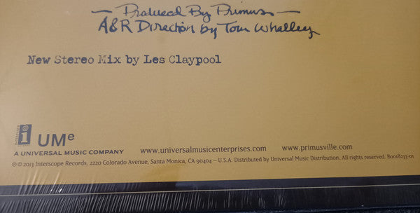Recorded in January 1991. New stereo mix, with restoration overseen by Les Claypool, (on this release 180 gram black vinyl) and printed full-size lyric sheet. ℗ © 2013 Interscope Records, 2220 Colorado Avenue, Santa Monica, CA 90404 - U.S.A. Distributed by Universal Music Distribution. All rights reserved. B0018233-01 MANUFACTURED IN POLAND sticker on back jacket shrink wrap