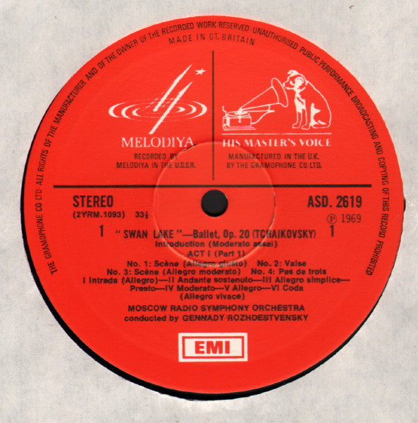 First UK stereo issue in this format, 3 x LPs with red/black Melodiya labels, together with a 4-page booklet, housed in a textured, hinged box.