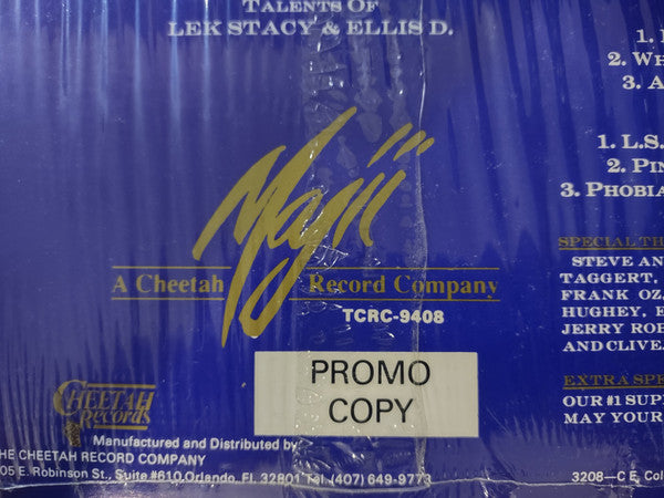 Promo copy, includes a "Radioactive Fish" sticker. The "Rhythm" records is purple-marbled while the Rave record is pink-marbled Promo version indicated by "promo" in place of bar code on rear cover and promo version of labels.