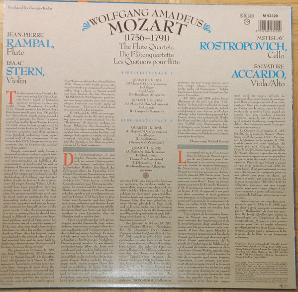 Jean-Pierre Rampal, Isaac Stern, Salvatore Accardo, Mstislav Rostropovich, Wolfgang Amadeus Mozart - The Flute Quartets (LP)