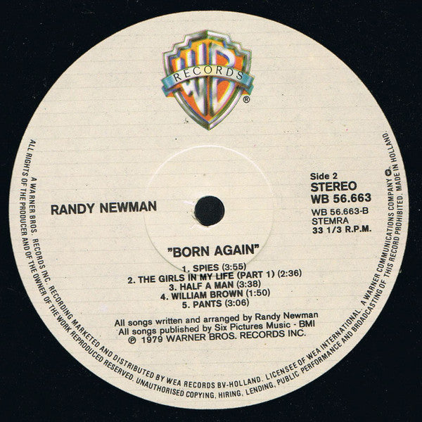 A Warner Bros. Records Inc. recording marketed and distributed by WEA Records BV-Holland. Licensee of WEA International. A Warner Communications company [Warner logo