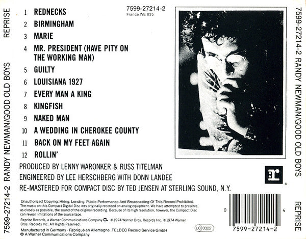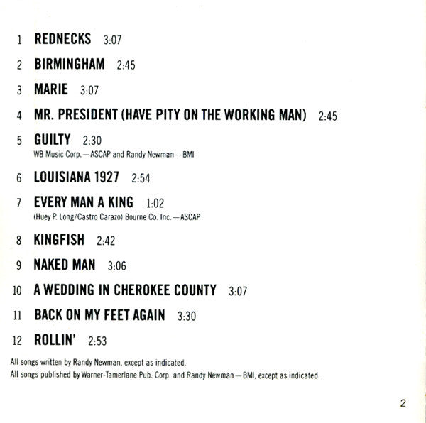 Phonographic Copyright (p) Warner Bros. Music, Inc. Copyright (c) Warner Bros. Music, Inc. Published By Warner-Tamerlane Publishing Corp. Published By Randy Newman Recorded At Warner Bros. Studios Mixed At Warner Bros. Studios Mastered At Warner Bros. Studios Remastered At Sterling Sound Manufactured By TELDEC Record Service GmbH Glass Mastered At Specialty Records Corporation