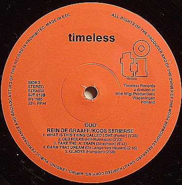 Timeless Records ℗ © 1985 / Timeless is a division of Wim Wigt Productions, Wageningen, Holland / Made in E.E.C.