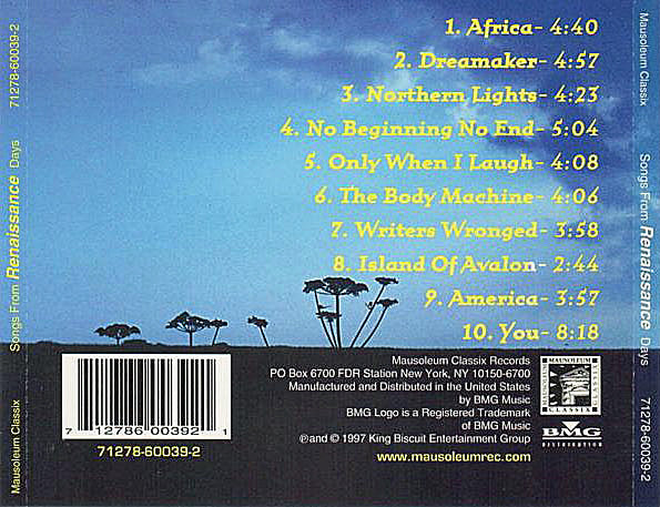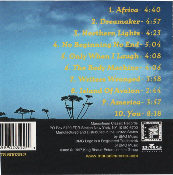 1. Africa 4:402. Dreamaker 4:573. Northern Lights 4:234. No Beginning No End 5:045. Only When I Laugh 4:086. The Body Machine 4:067. Writers Wronged 3:588. Island Of Avalon 3:449. America 3:5710. You 8:18