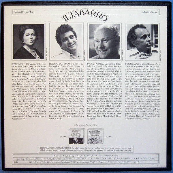 Renata Scotto, Placido Domingo, Ingvar Wixell, Lorin Maazel, Philharmonia Orchestra, Giacomo Puccini - Il Tabarro (LP, Album, Quad + Box)