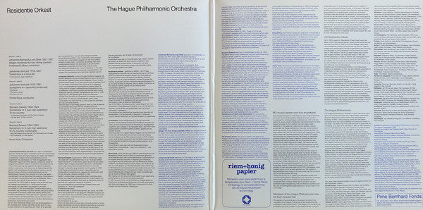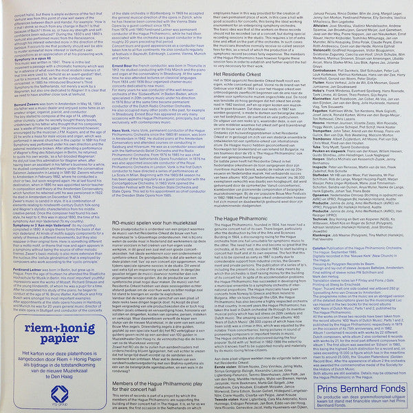 Comes in a gatefold sleeve with liner notes in Dutch and English (translations) inside, including credits and the names of all members of the (The Hague Philharmonic) Orchestra.
