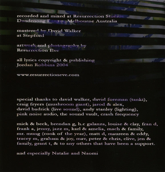 Recorded and mixed at Resurrection Studios, Dandenong Ranges, Melbourne, Australia.