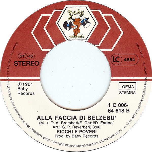 Artist appears as 'Ricchi & Poveri' on the sleeve, as 'Ricchi E Poveri' on the center labels.
