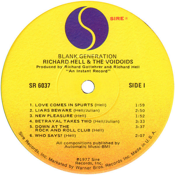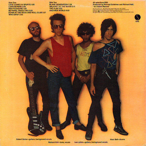 Sire Records, Inc. Marketed by Warner Bros. Records, Inc., a Warner Communications Company Made in U.S.A. ©1977 Automatic Music/Quickmix Music/Doraflo Music BMI, except B2 published by Cireco Music BMI. Recorded at Plaza Sound N.Y.C., except A2, A3 & B4 recorded at Electric Lady Studios N.Y.C. Mastered at Sterling Sound N.Y.C. Including a black and white dust sleeve with lyrics & photos Promo copies are basically the same, except for a Warner Bros promotional sticker on front cover