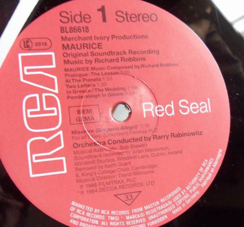 Original motion picture soundtrack of the Ismail Merchant/James Ivory production called "Maurice". A6 originally released in 1964.