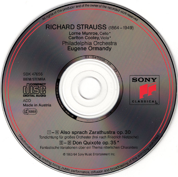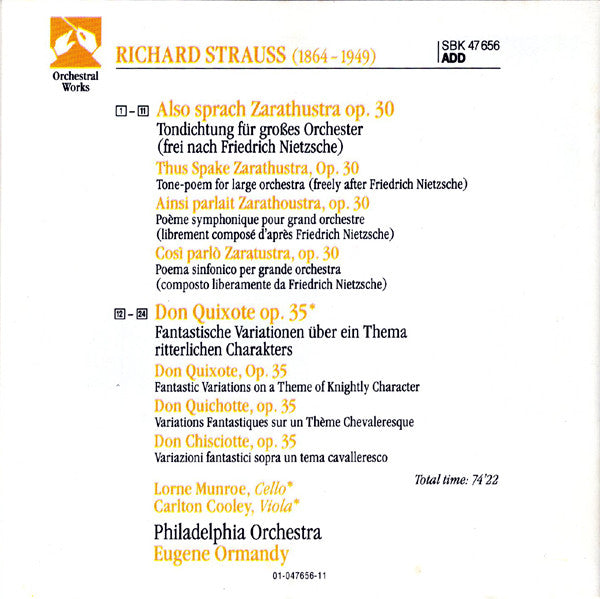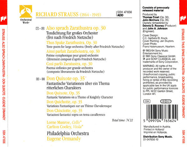 . Also Sprach Zarathustra Op.30 (Tondichtung Für Großes Orchester Frei Nach Friedrich Nietzsche) . Don Quixote Op.35 (Fantastische Variationen Über Ein Thema Ritterlichen Charakters)