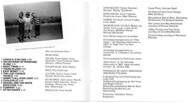 Tracks 2 and 11 recorded live Dec. 22, 1978 at TBS. Mixed and mastered at Warner Bros. Recording Studios. Recorded at Warner Bros. Recording Studios and The Burbank Studios.