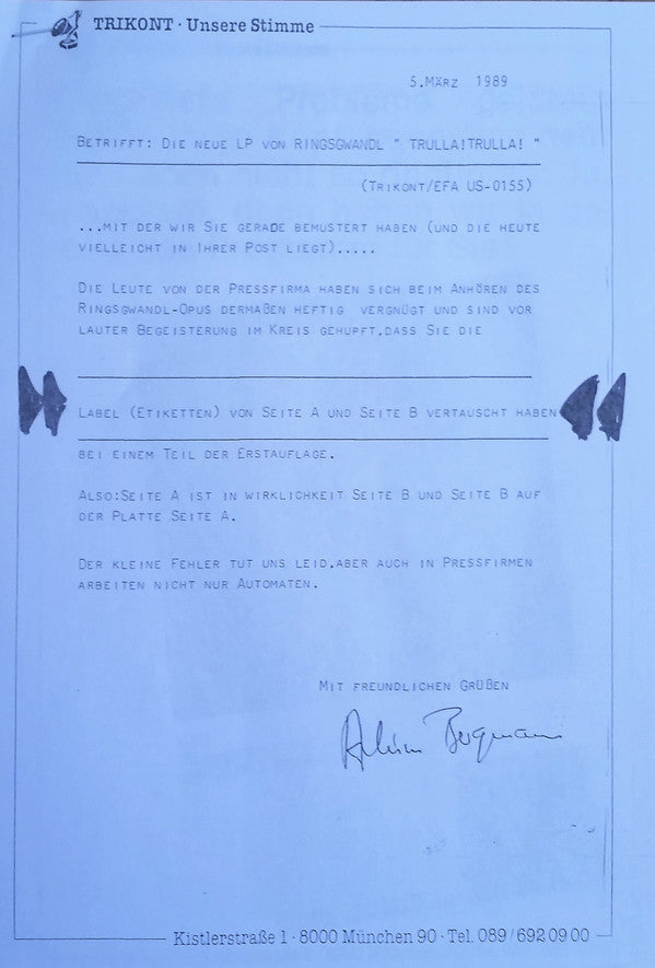 These items came with a Press-Kit by Trikont (see pictures) and were use as promos.