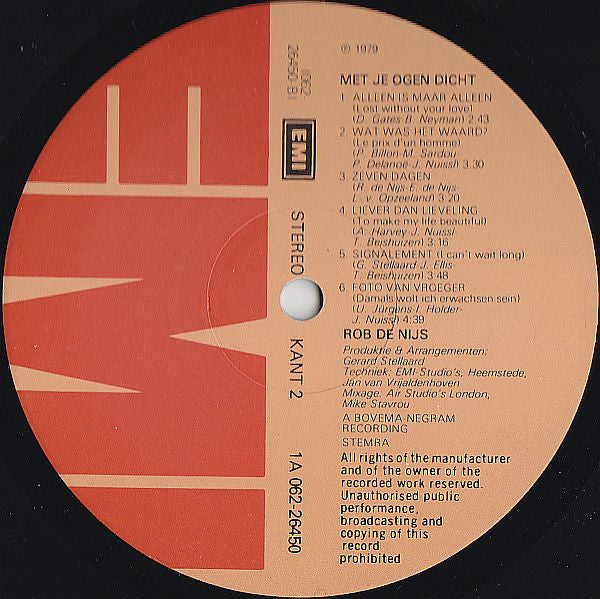 Recorded at E.M.I. Studio's, Heemstede. Mixed at Air Studios, London.