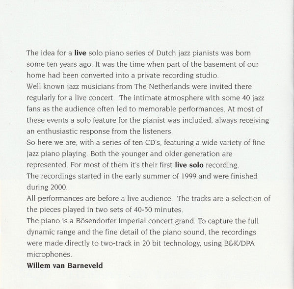 Recorded Live At: Pinehill Studio, Leersum, The Netherlands