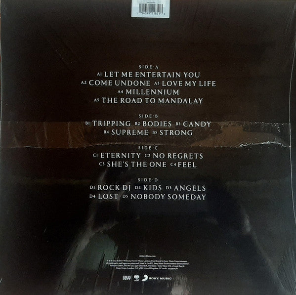 Hype sticker on shrink: Exclusive Double LP. Transparent Blue Vinyl. Robbie Williams The Classic Hits. Newly Orchestrated. Featuring Angels, Feel, Millennium, Rock DJ, She's The One and the new single Lost.